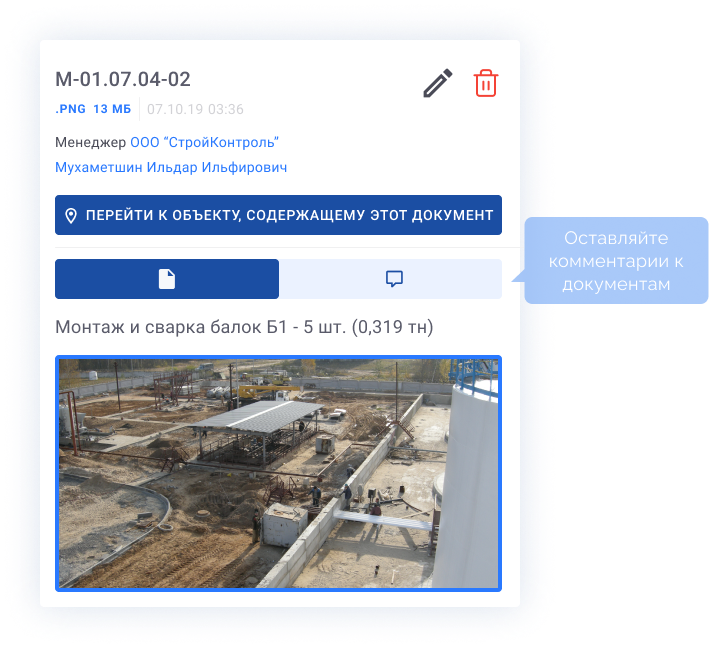Упрощение коммуникации: комментирование документов и прикрепление к ним необходимых файлов внутри системы