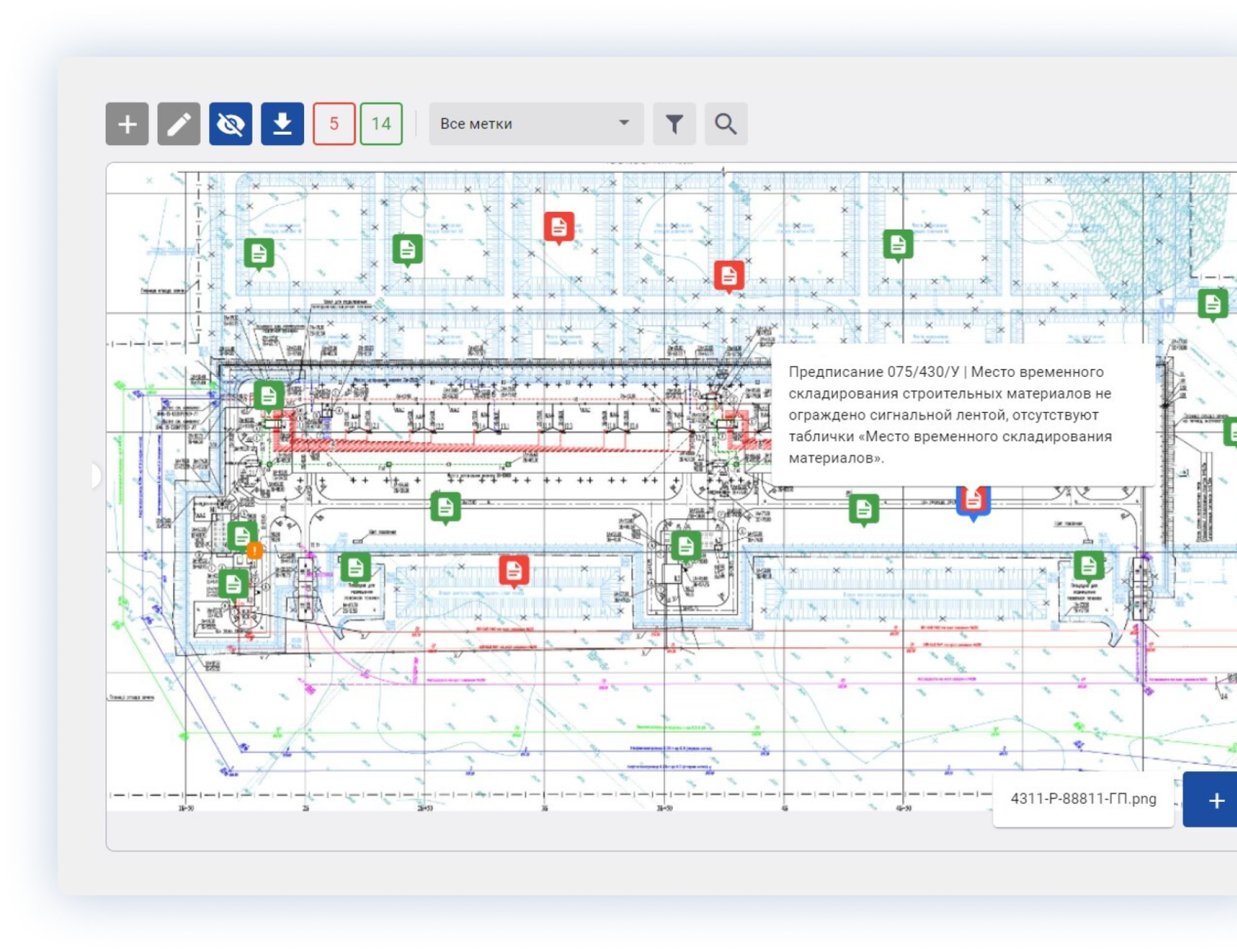 Создание геометок на картах и планах, связанных с документами строительного контроля