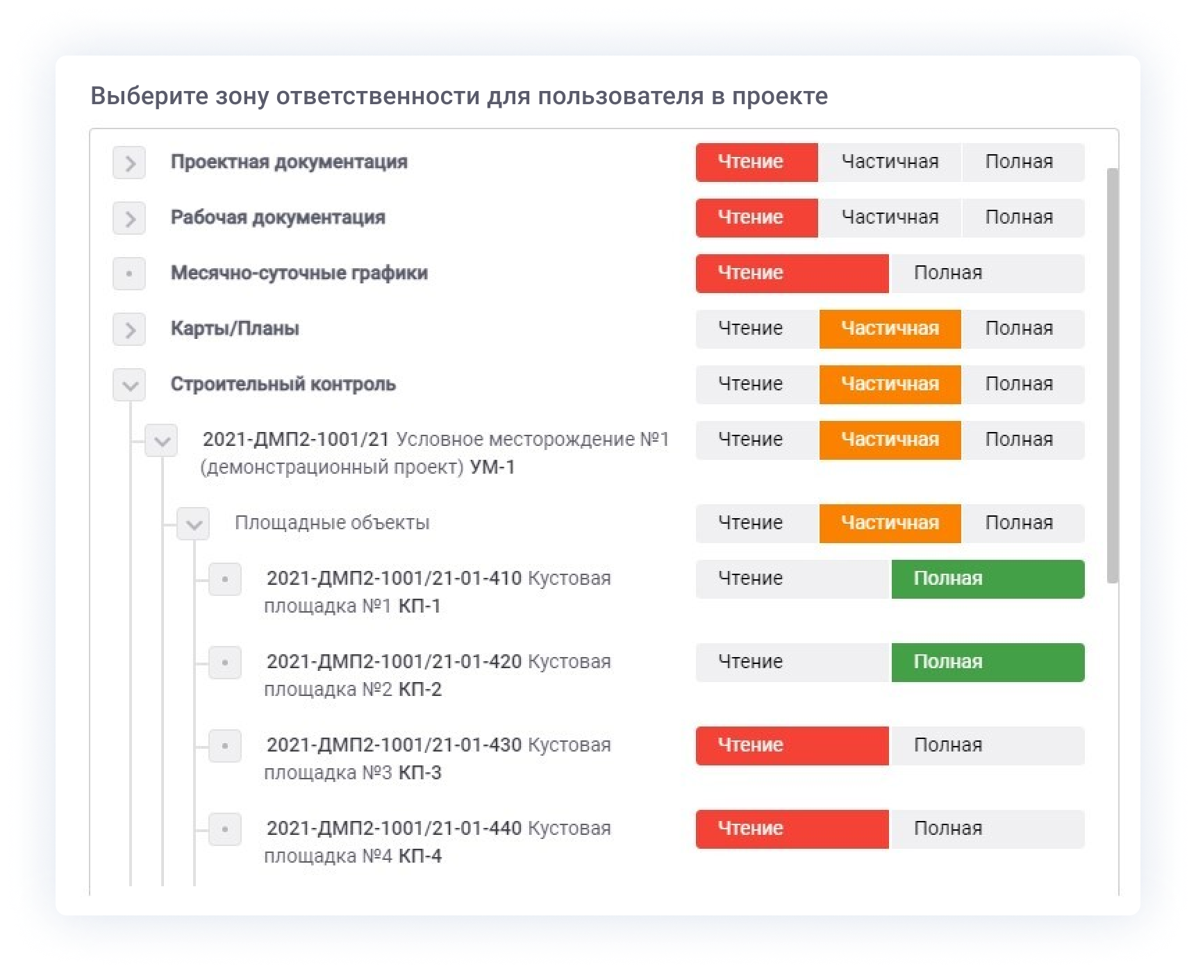 Гибко настраиваемый доступ к данным для каждого участника проекта или групп пользователей
