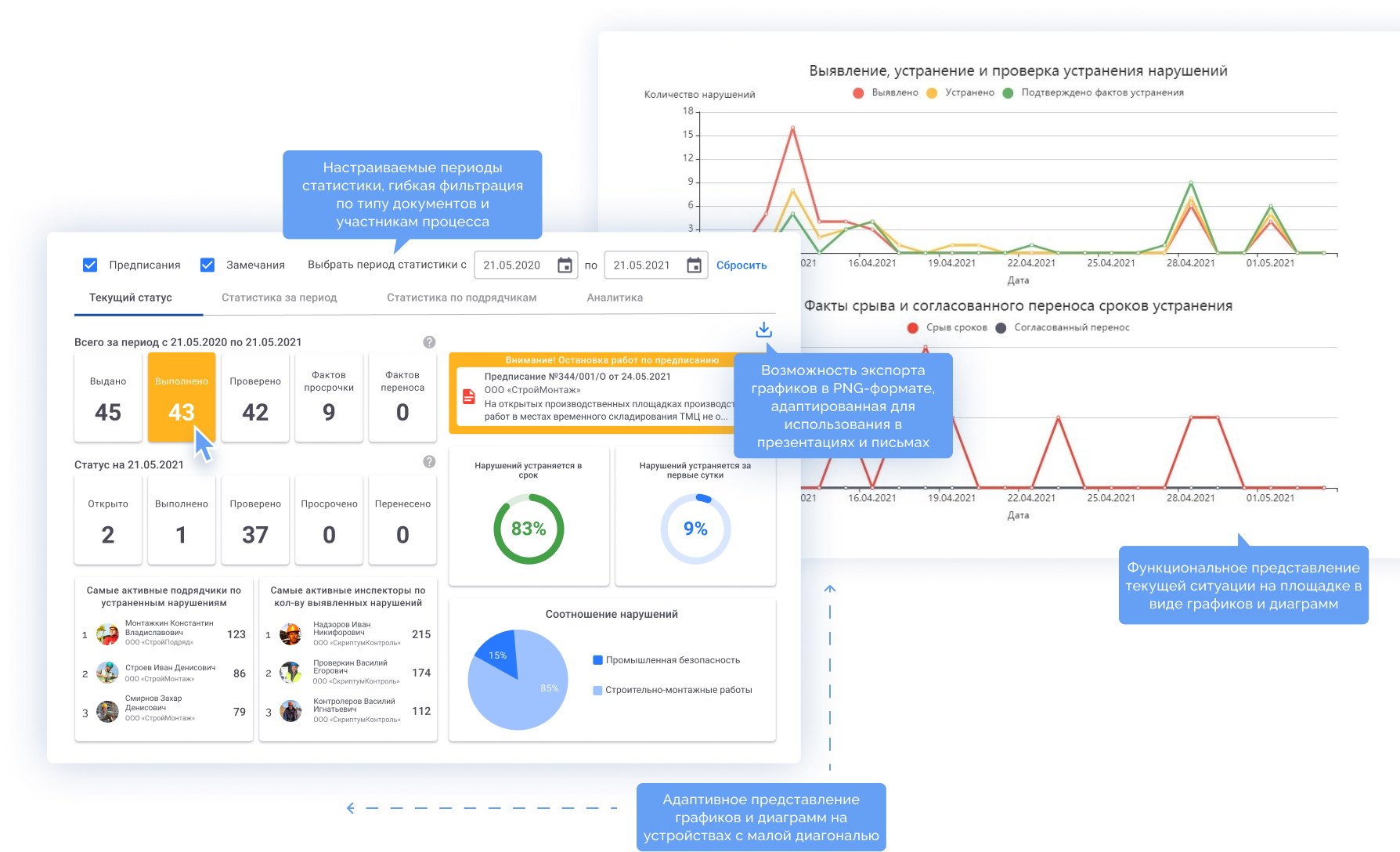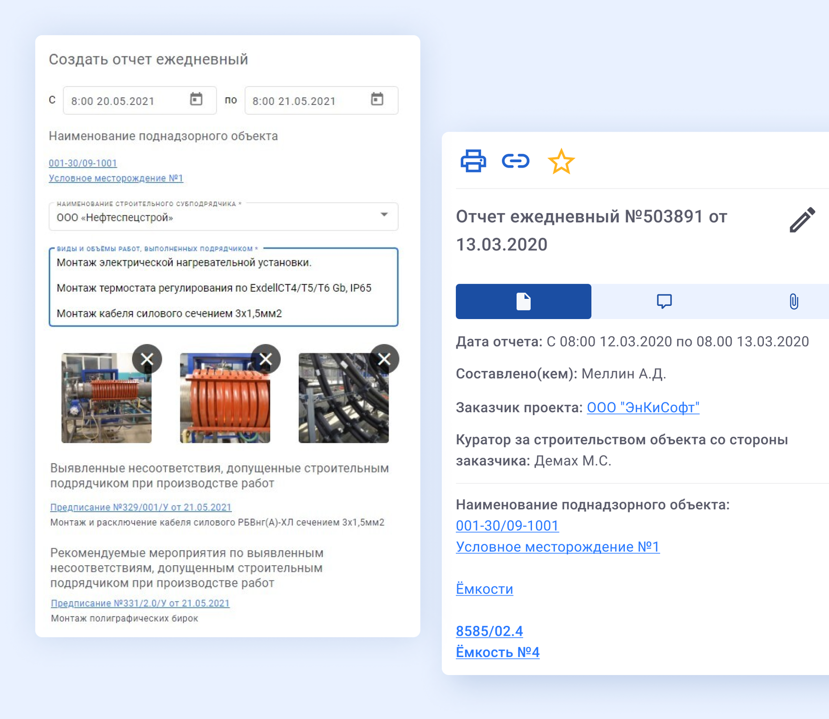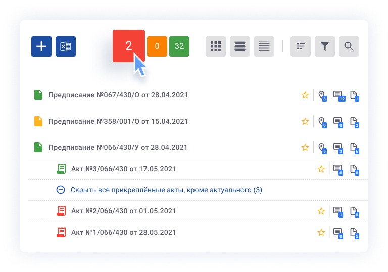 Возможность создания ответственными лицами предписаний, замечаний и актов-уведомлений